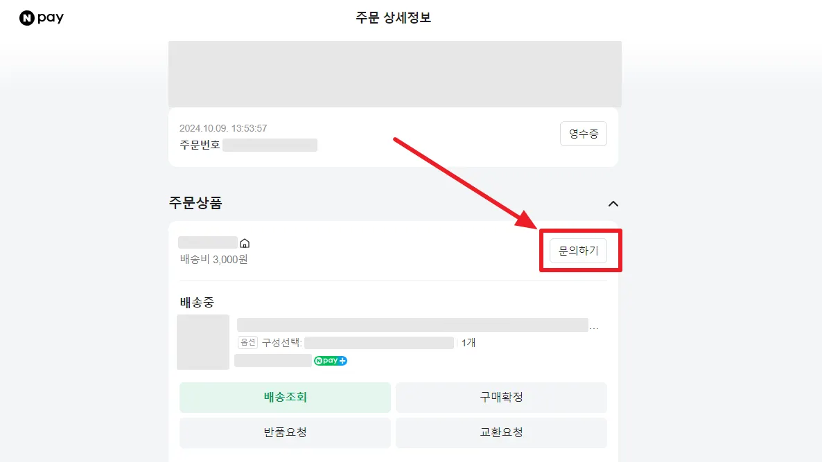 주문문의: 주문 확인 페이지에서 작성한 문의