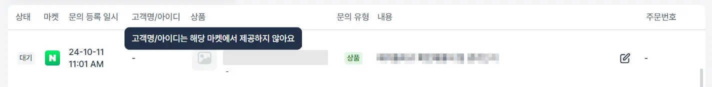 따라서 동일 오픈마켓의 고객 문의여도, 상품문의 혹은 주문문의인지에 따라 동일한 정보가 보이거나 혹은 보이지 않을 수 있어요.