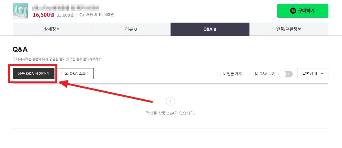 상품문의: 상품 판매 페이지에서 작성한 문의