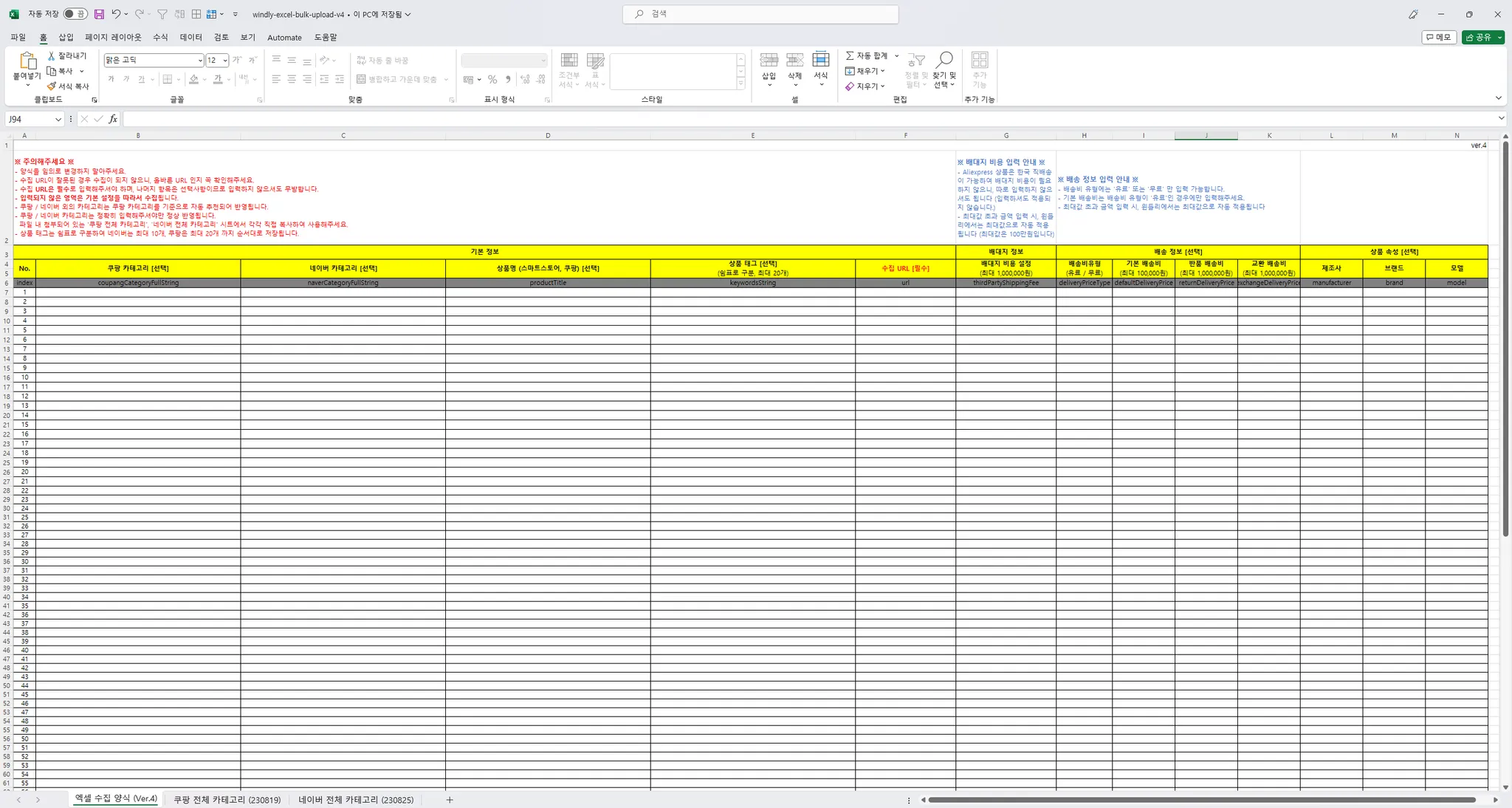 다운로드 한 엑셀 양식에 수집할 도매꾹 또는 도매매 상품 URL 등의 값을 입력한 후 저장해 주세요.