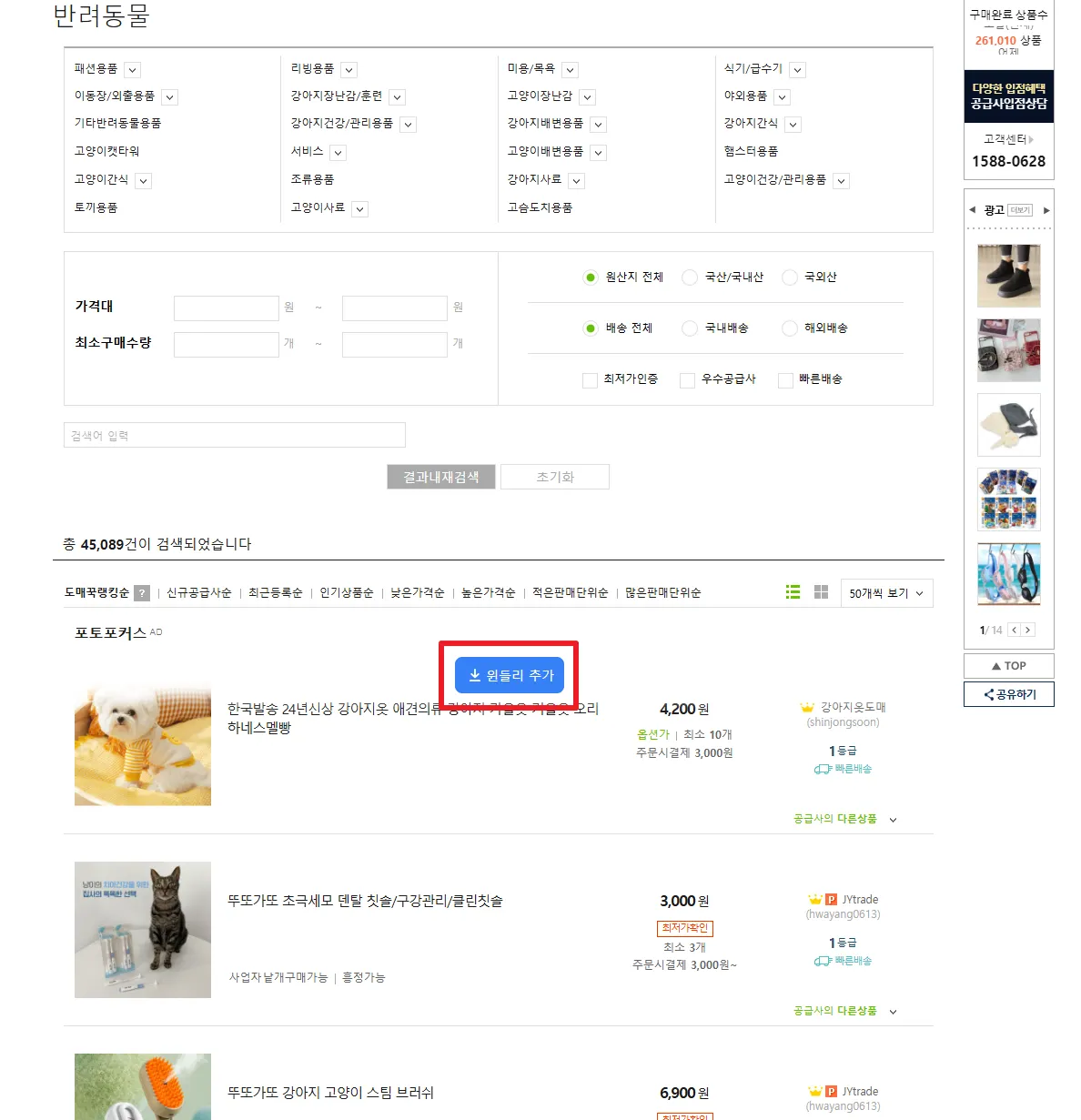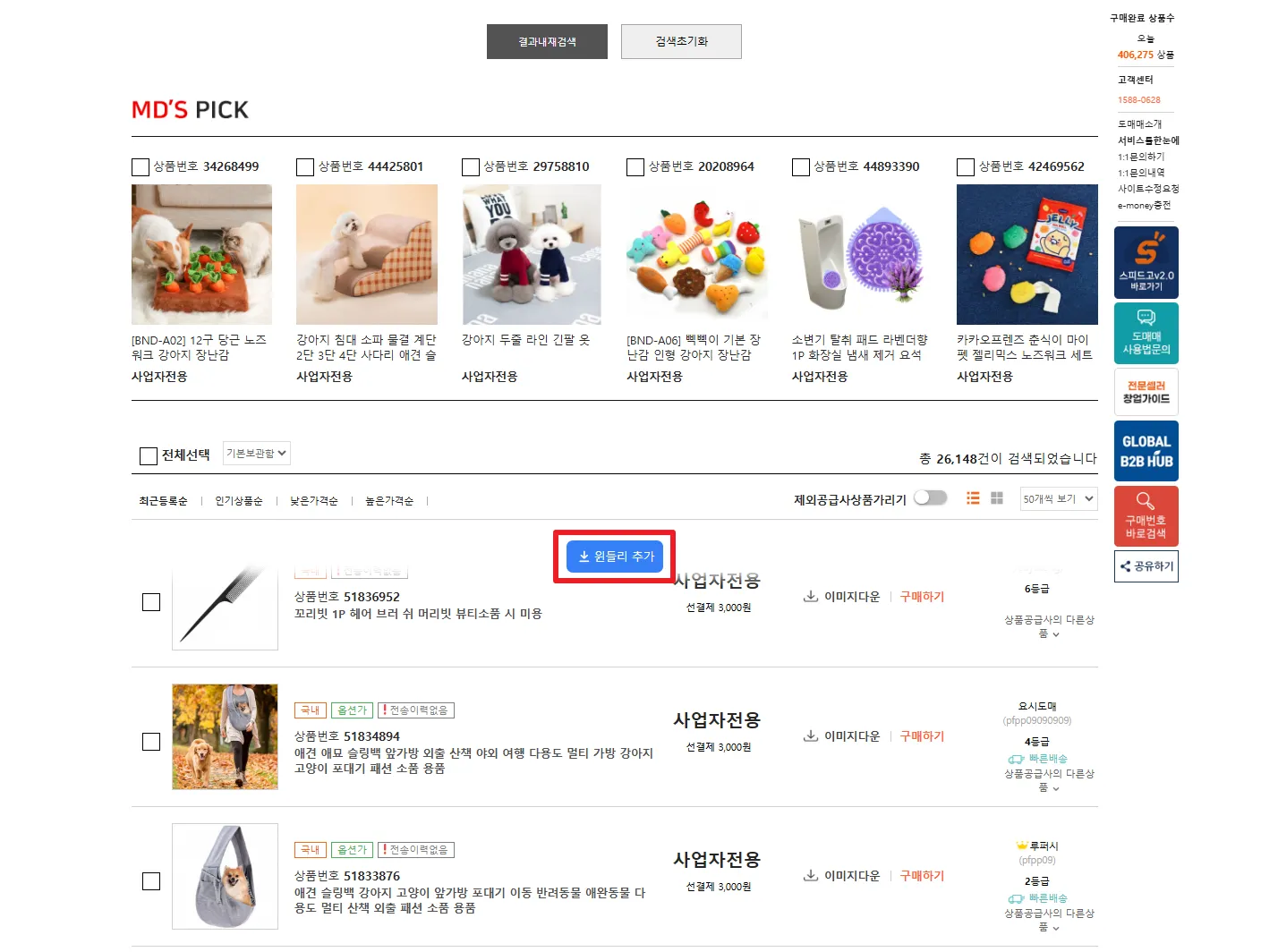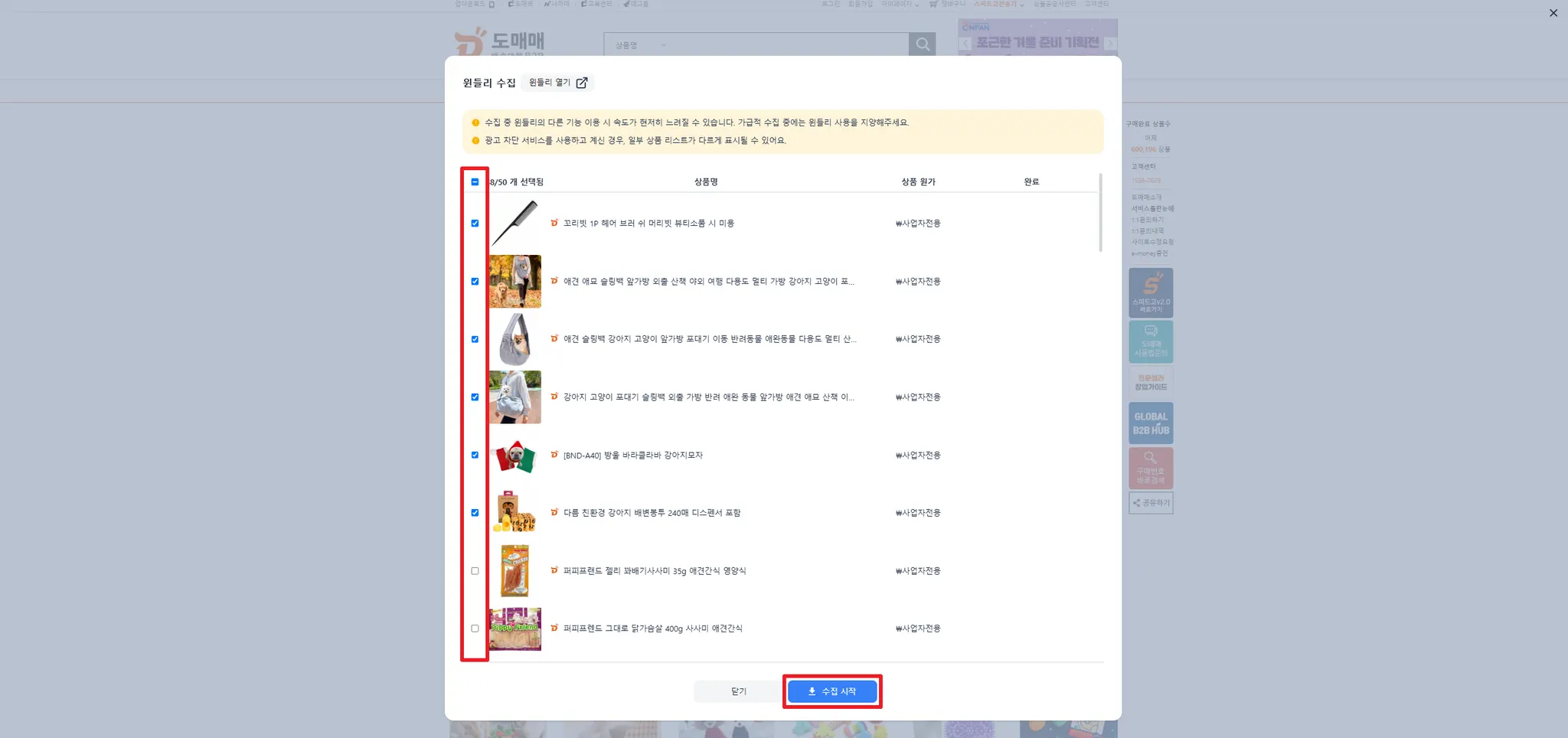 도매꾹의 사업자 전용 페이지는 로그인 시에만 일괄, 썸네일 수집이 가능해요.