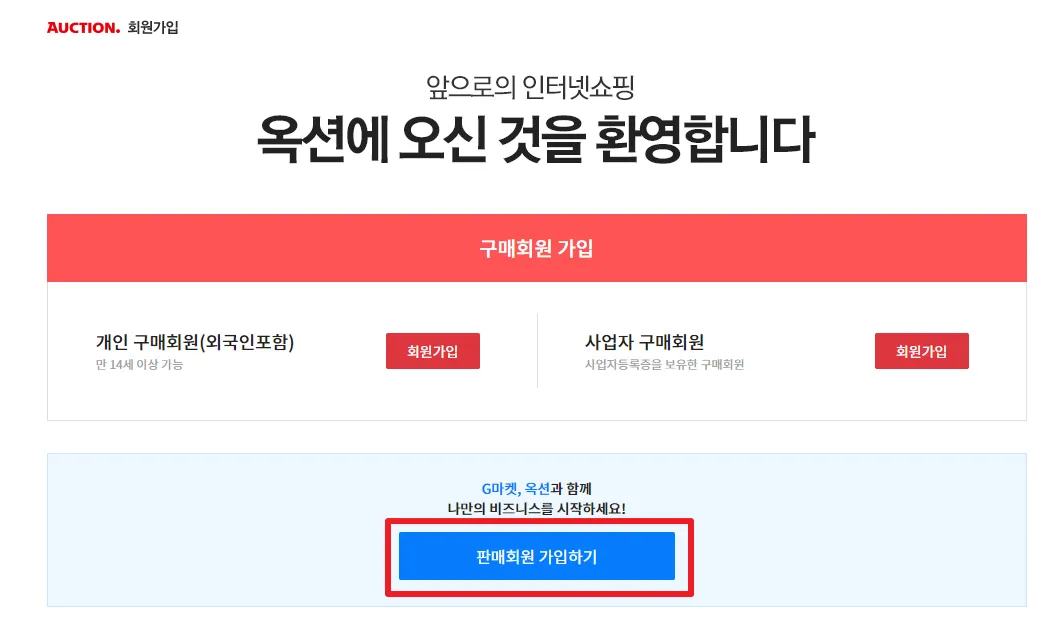 사전준비1) 옥션 판매자 회원가입