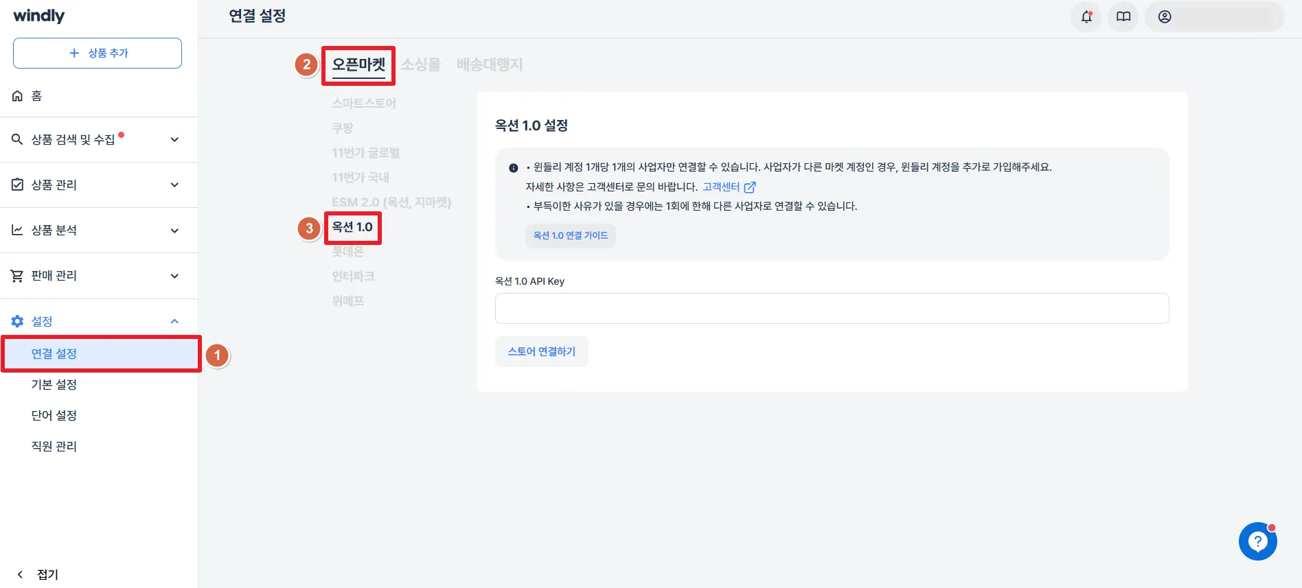 윈들리에서 붙여넣는 곳: 설정 > 연결 설정 > 오픈마켓 > 옥션 1.0