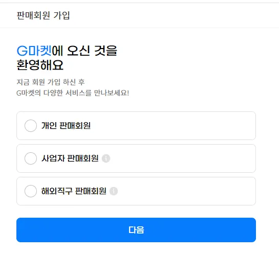 개인, 사업자, 또는 글로벌셀러 중 하나를 선택해주세요.