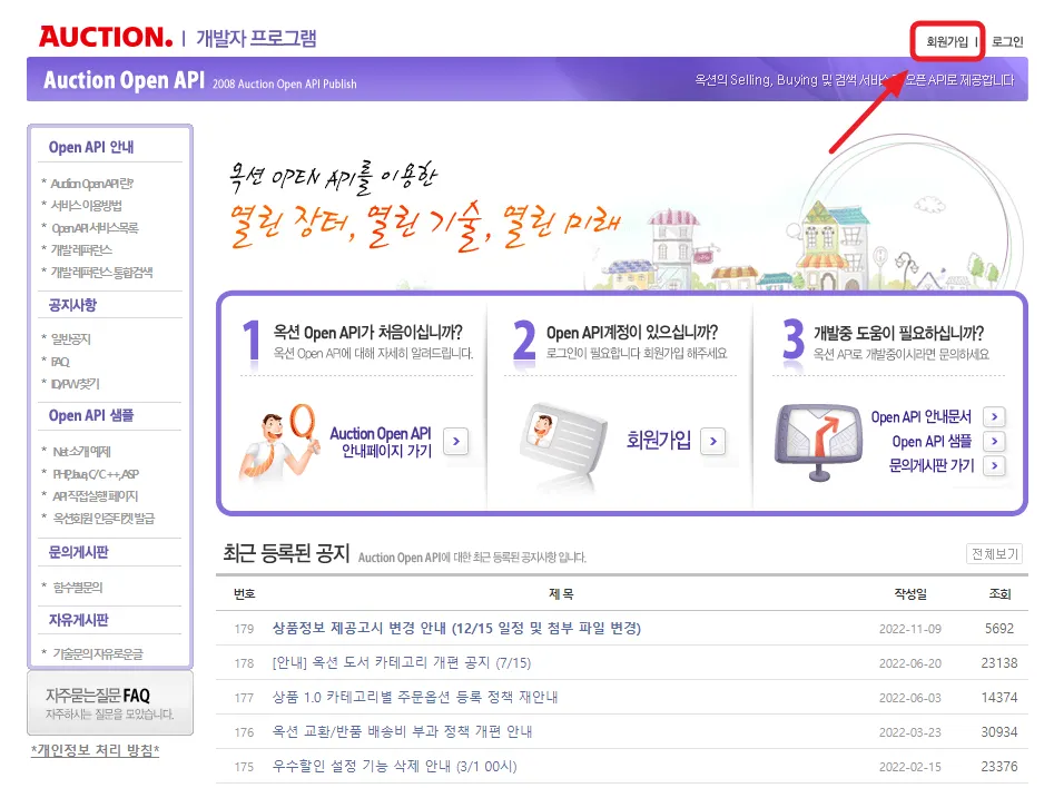 옥션 API 키를 받으려면 개발자 사이트에서도 가입이 필요해요.
