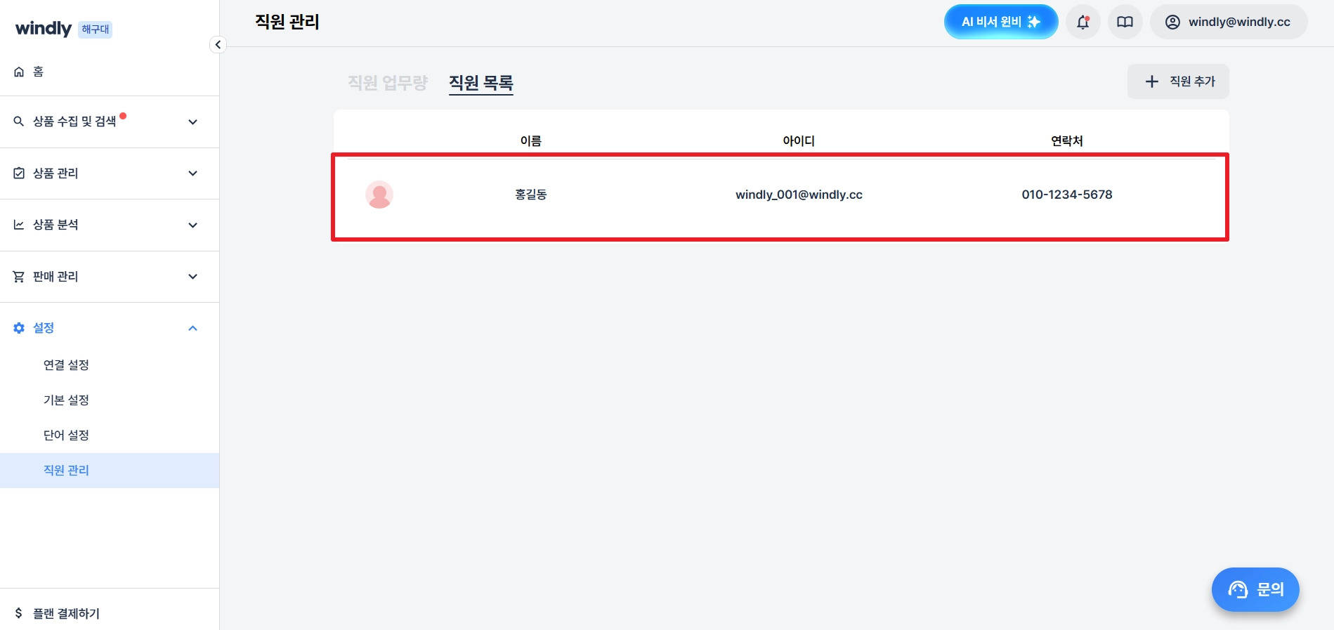 추가된 직원은 직원 목록에서 확인할 수 있어요.