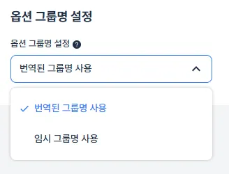 자동으로 번역되는 옵션 그룹명을 사용하지 않고, 임시 그룹명을 사용해요.