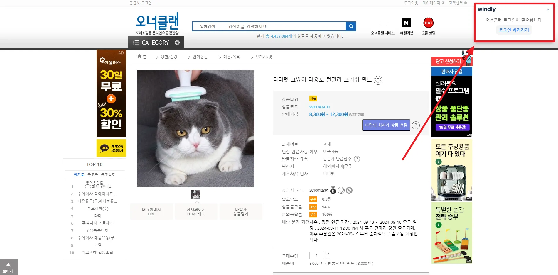 오너클랜에서는 오너클랜 계정으로 로그인된 상태에서만 상품 확인이 가능해요.