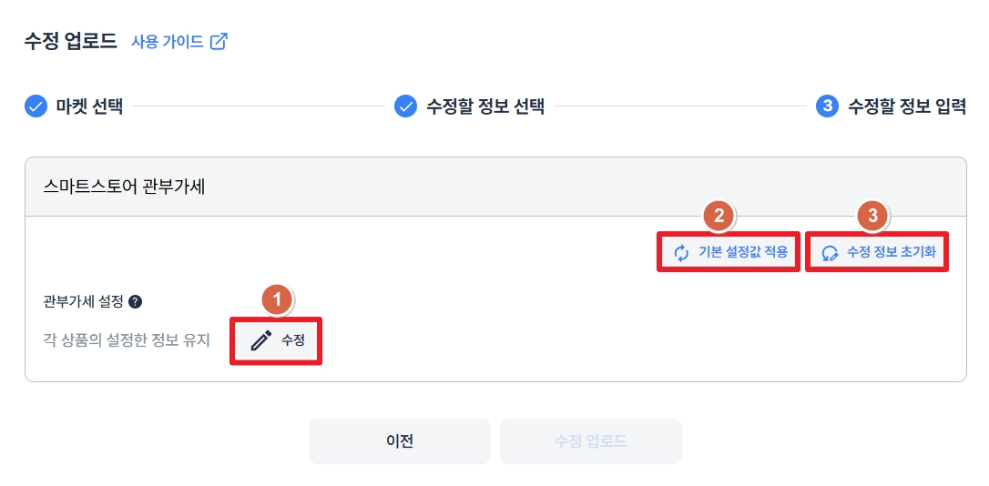 스마트스토어 관부가세 정보 수정하기