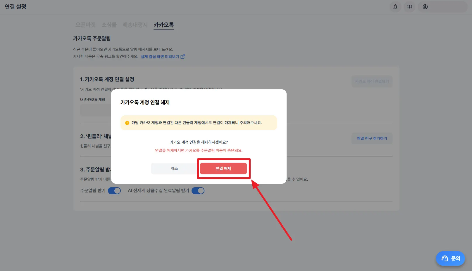 연결 해제 시, 해당 카카오톡 계정과 연결된 다른 윈들리 계정에서도 연결이 해제됩니다.