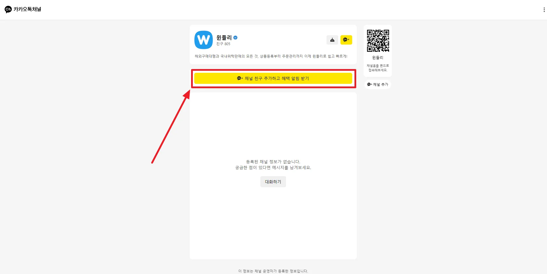 ‘채널 친구 추가하기’ 버튼을 클릭해 주세요.