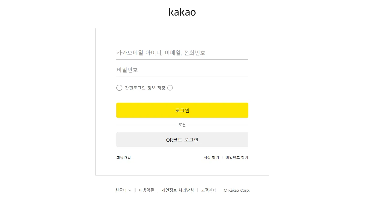 카카오톡 아이디/이메일/전화번호와 비밀번호를 입력하여 로그인해 주세요.