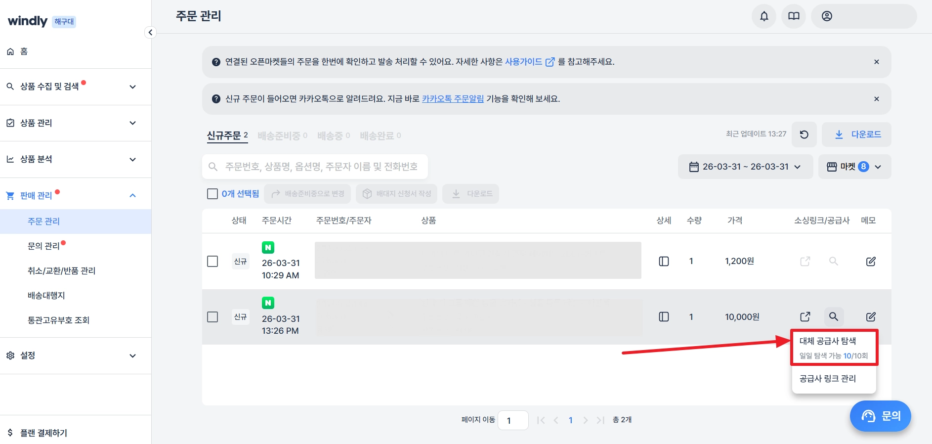 주문 관리 페이지에서 대체 공급사 탐색 기능을 이용할 수 있고, 수집상품 혹은 등록상품 페이지에서 대체 공급사 링크를 추가할 수도 있어요.