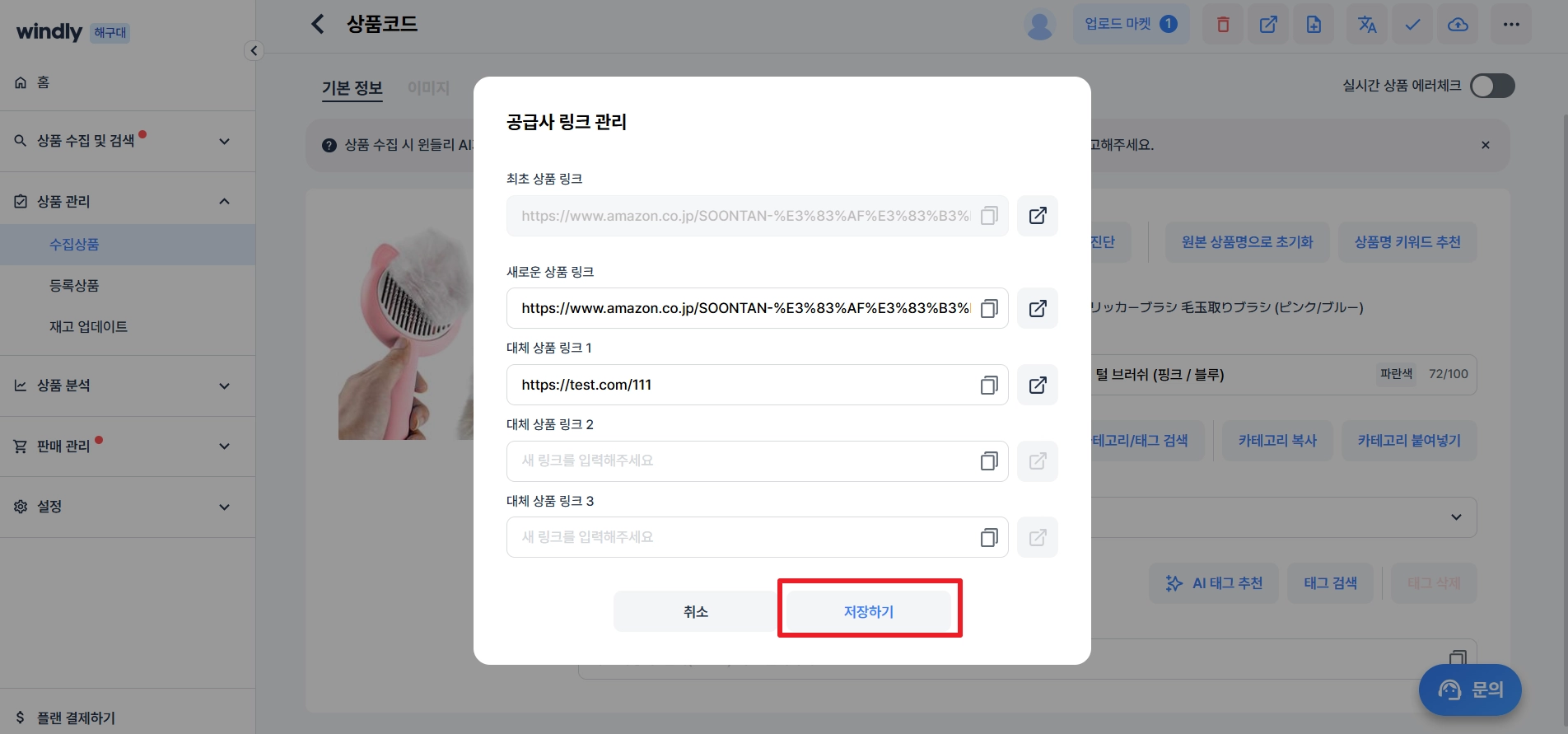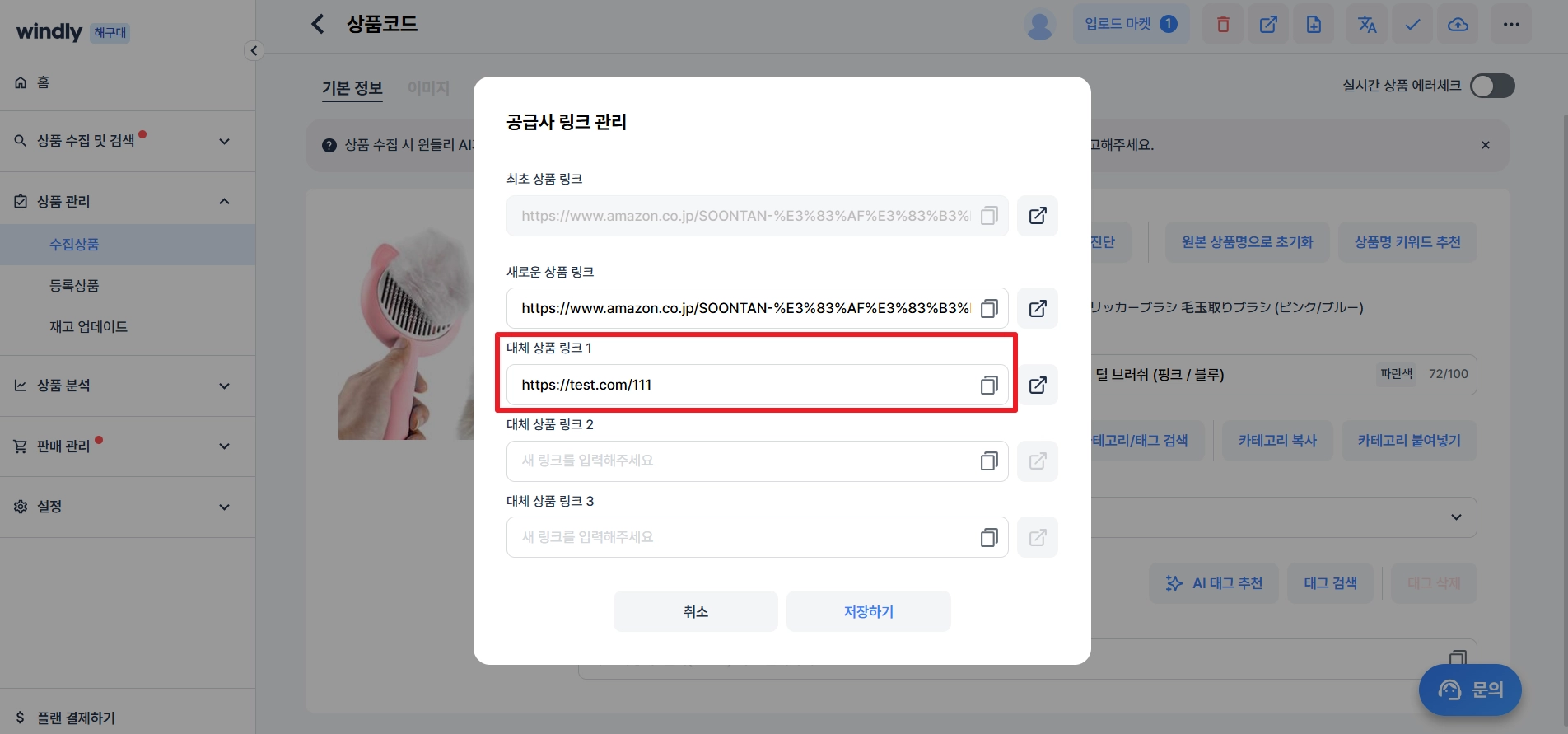상품별로 대체 공급사 링크를 추가 및 확인할 수 있어요.