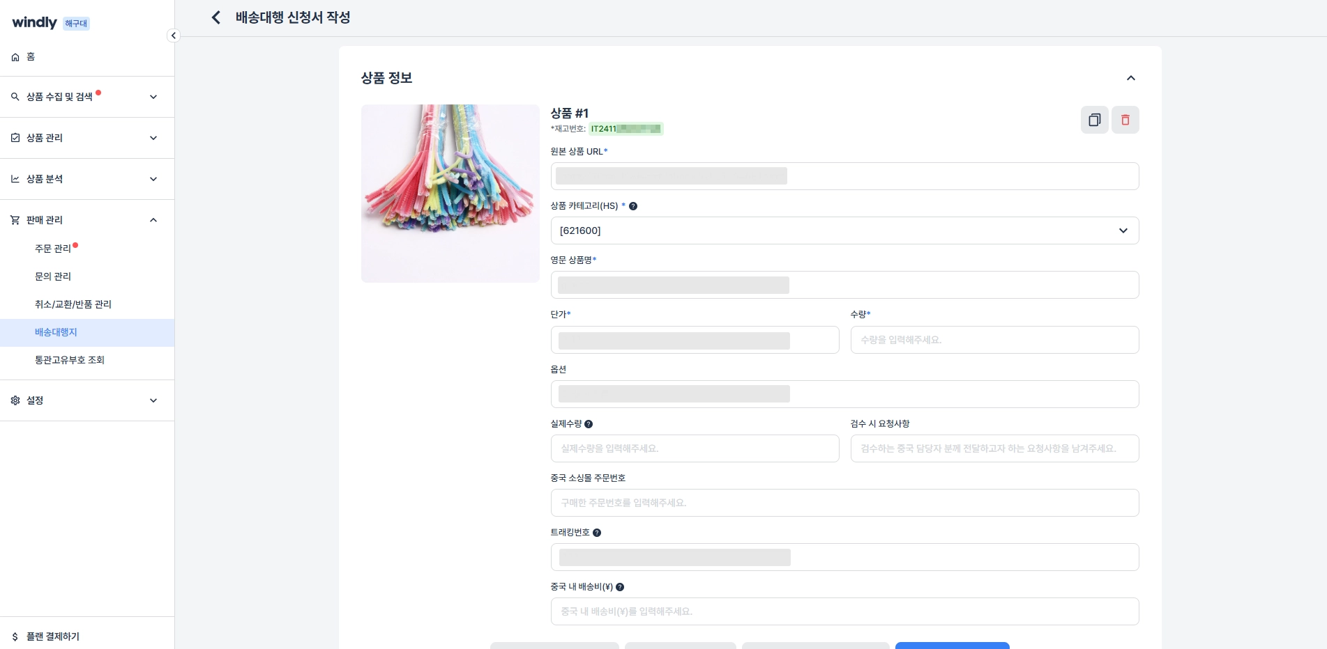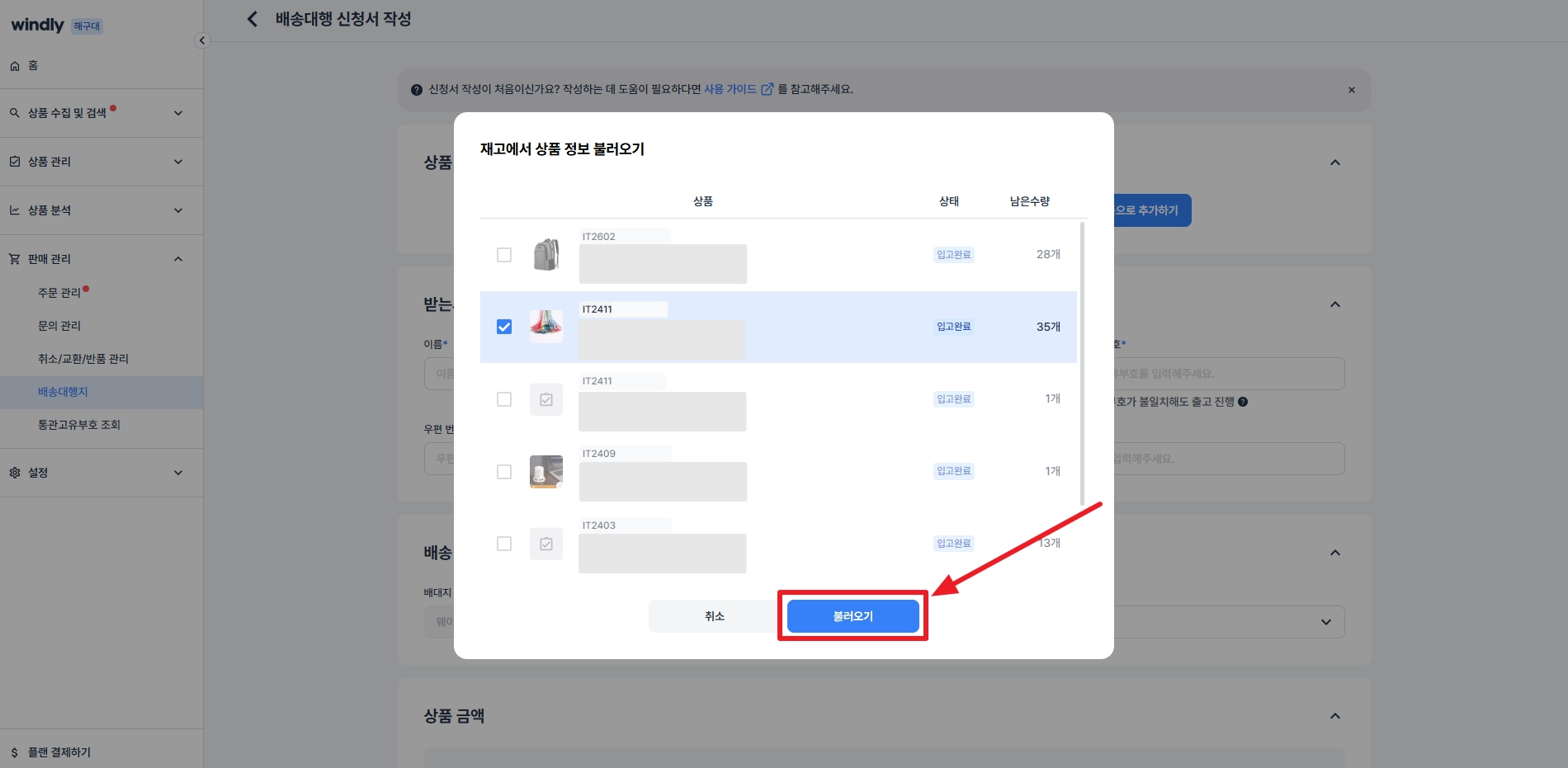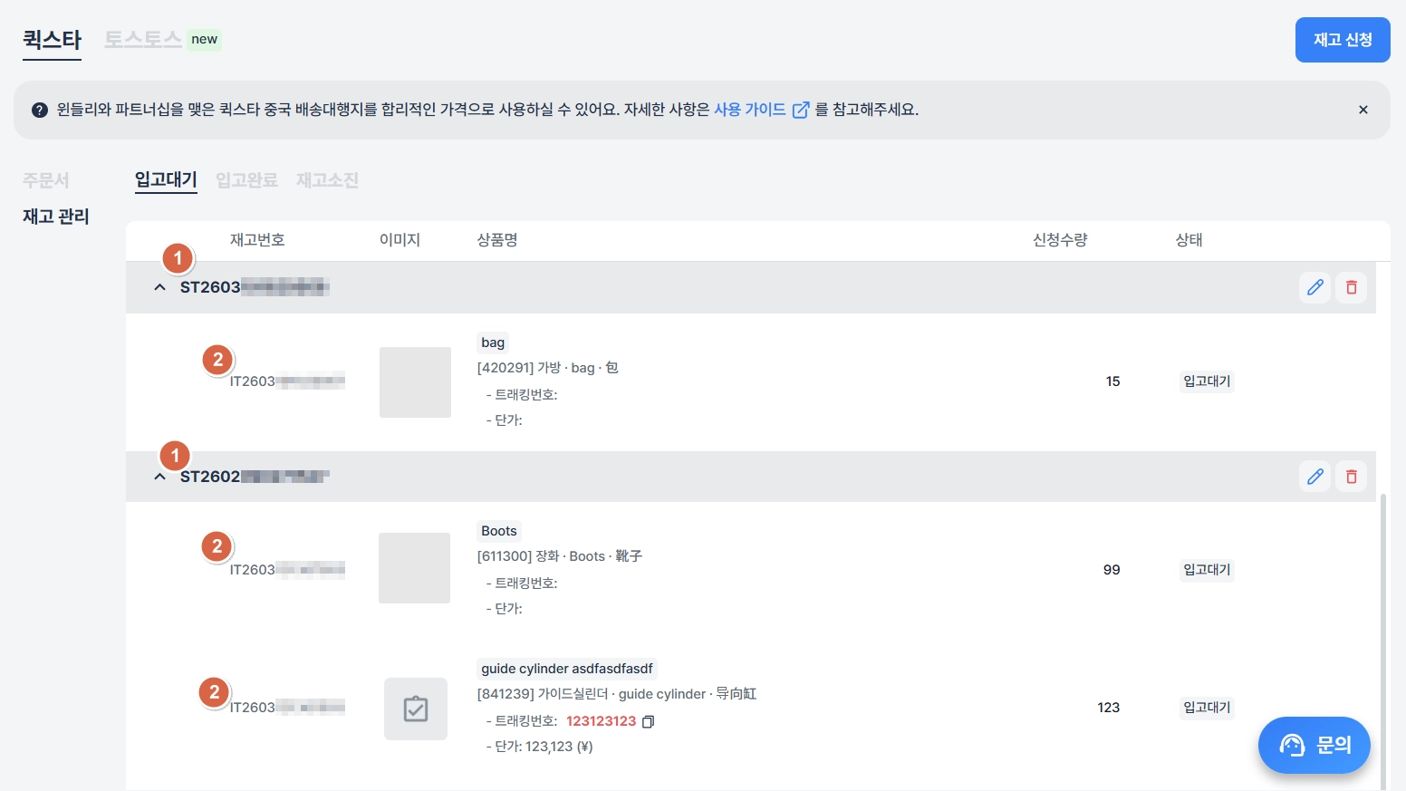 윈들리에서 ‘퀵스타’ 배송대행지의 재고 입고를 신청하고 사용할 수 있어요.