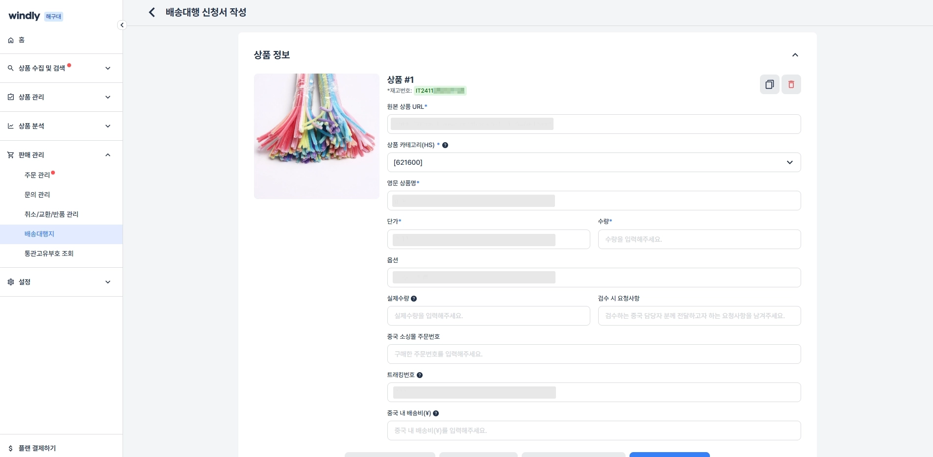 주의사항: 트래킹 번호가 입력되어야 입고완료 단계로 넘어갈 수 있으니, 중국 소싱몰에서 트래킹번호가 나오면 반드시 트래킹번호를 입력해 주세요.