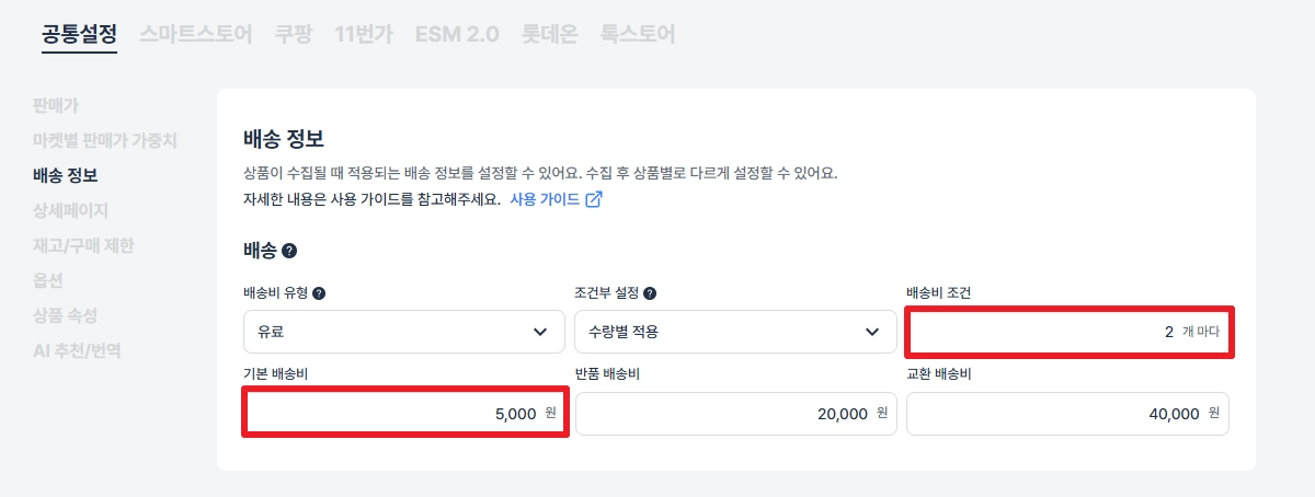 기본배송비는 순수익 확보 용도로 활용하세요.