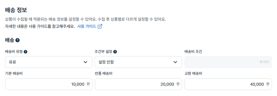 구매 고객이 지불할 배송비를 설정합니다.