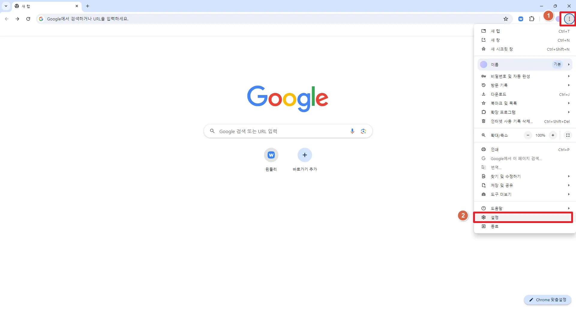 오른쪽 상단의 점 3개 모양을 클릭하여, 설정 메뉴에 들어가주세요.