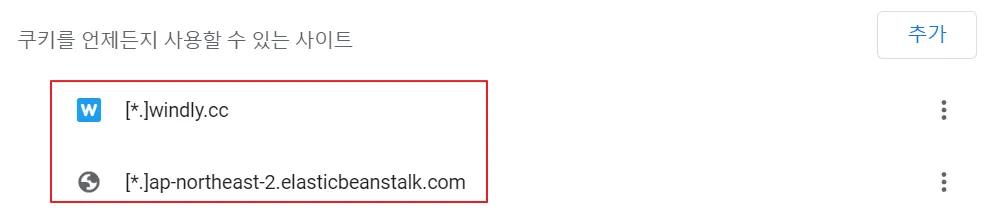 사이트 명에 “[*.]windly.cc”를 복사 및 붙여넣기하고 추가를 클릭하세요.
